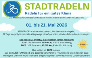 Am Donnerstag, dem 26. März 2026, trafen sich sechs Schülerinnen und Schüler des Wahlkurses „Soziales und ökologisches Engagement“ um 15:30 Uhr vor dem Einkaufszentrum am Hubland, um für die „Tafel e. V.“ haltbare Lebensmittel zu sammeln, da diese erfahrungsgemäß bei den „Tafeln“ knapp sind. Dies konnten die Schülerinnen und Schüler des Wahlkurses bei der Tafelausgabe im Dezember selbst beobachten, [...]