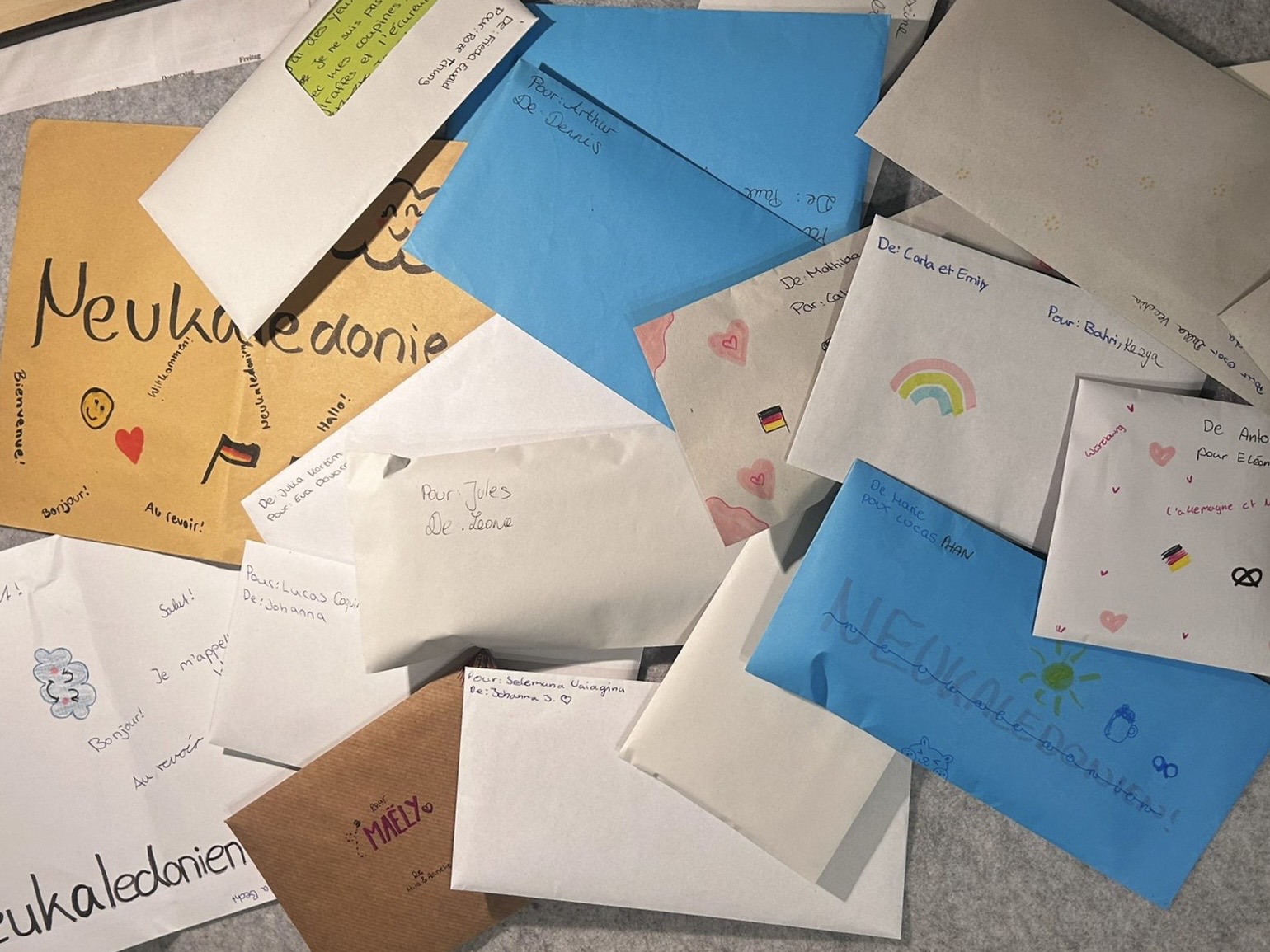 Jede Schülerin und jeder Schüler hat einen persönlichen Brieffreund oder eine Brieffreundin zugeteilt bekommen und einen ersten Brief auf Französisch verfasst. Neben den Briefen wurde auch ein großes Paket mit kleinen deutschen Geschenken zusammengestellt, das am 14. November 2025 auf die lange Reise nach Neukaledonien ging. Geplant sind insgesamt zwei Briefwechsel in beide Richtungen, sodass jeder am Ende zwei Briefe von seinem Brieffreund erhält.